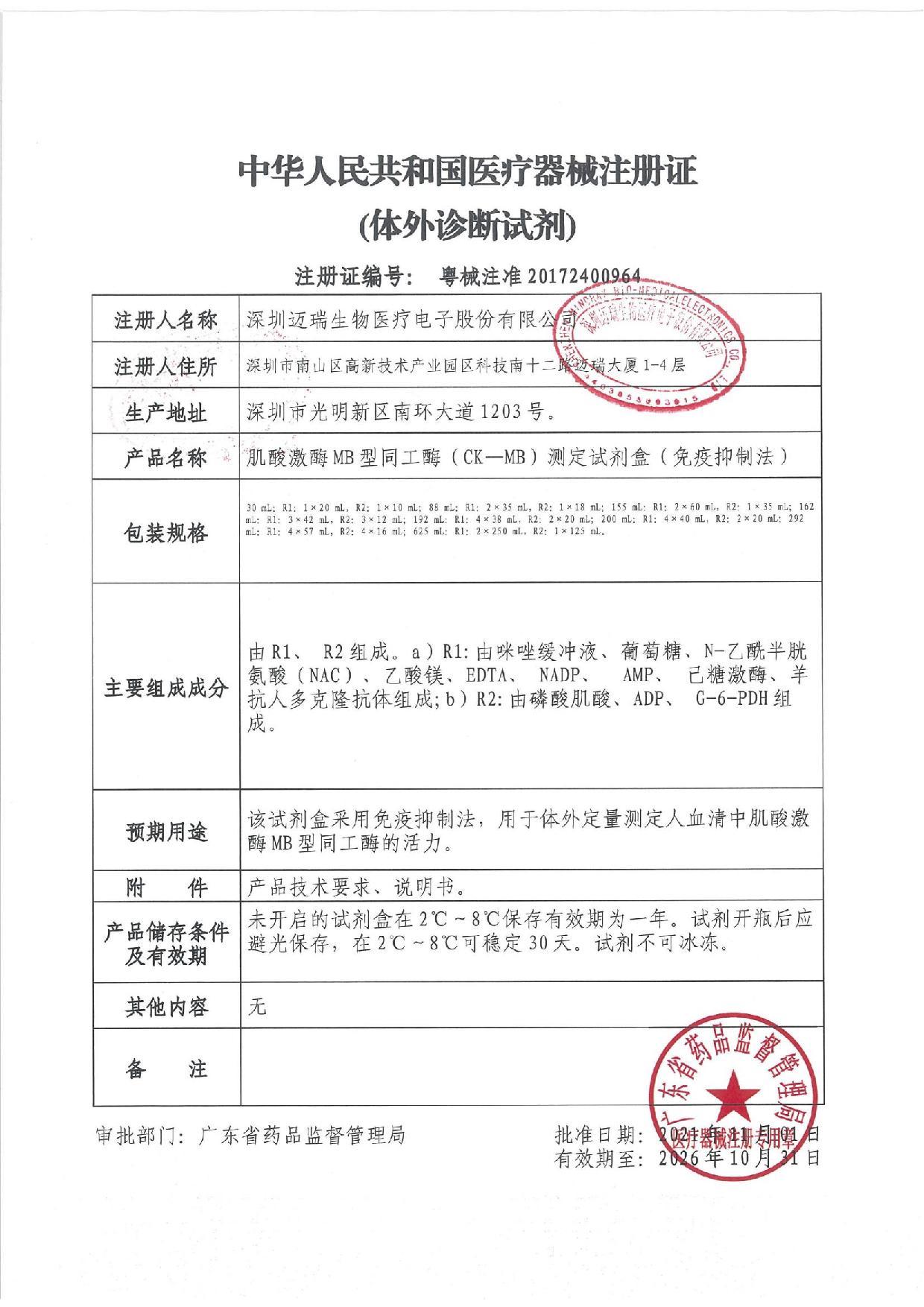 肌酸激酶MB型同工酶(CK-MB)測定試劑盒【深圳邁瑞】