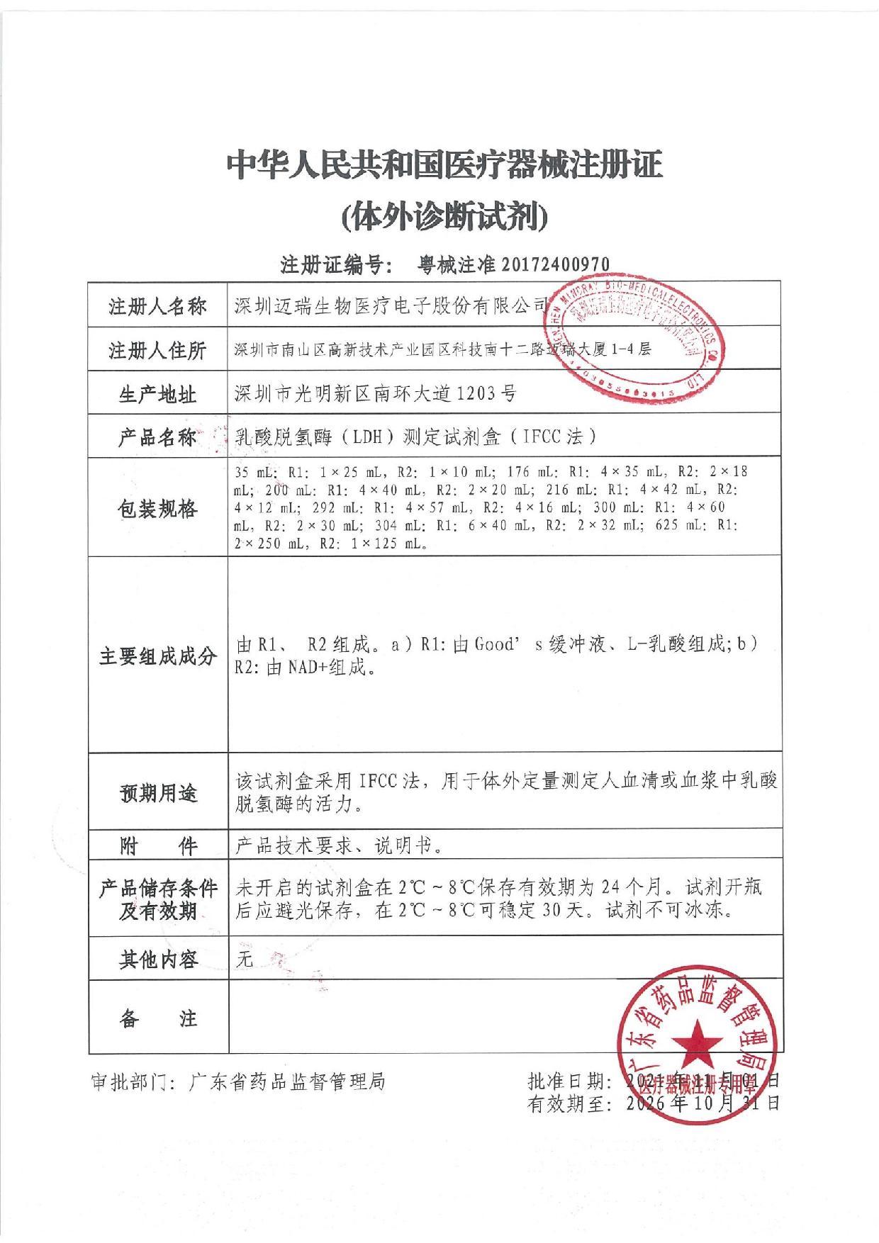 乳酸脫氫酶(LDH)測定試劑盒(IFCC法)【深圳邁瑞】