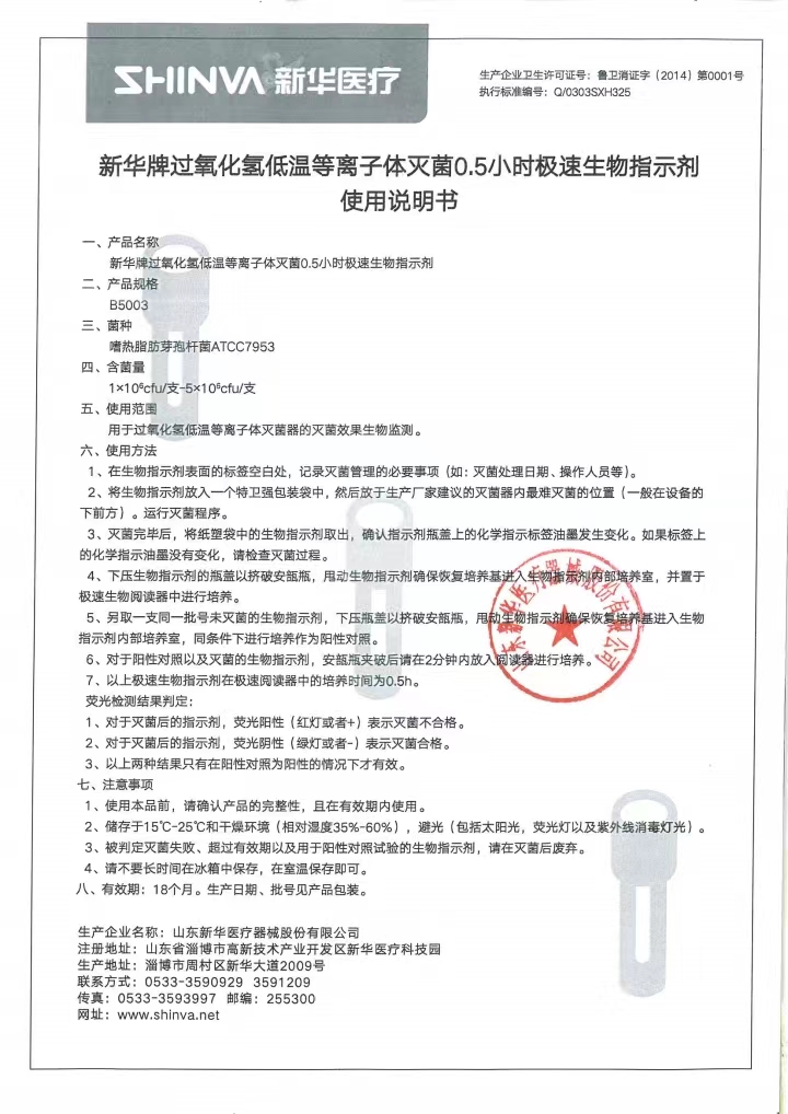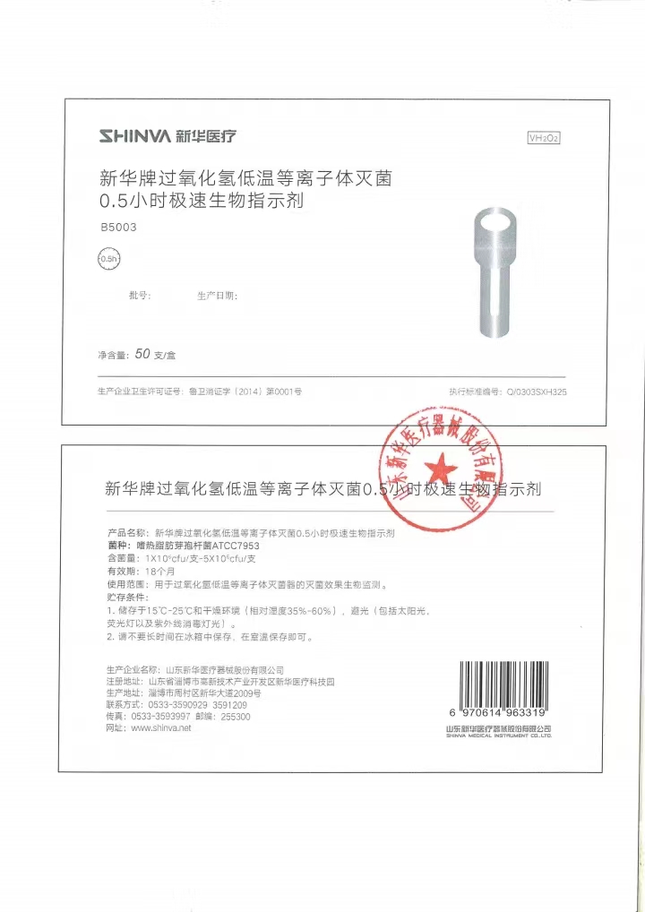 新華牌過(guò)氧化氫低溫等離子體滅菌0.5小時(shí)極速生物指示劑【山東新華】